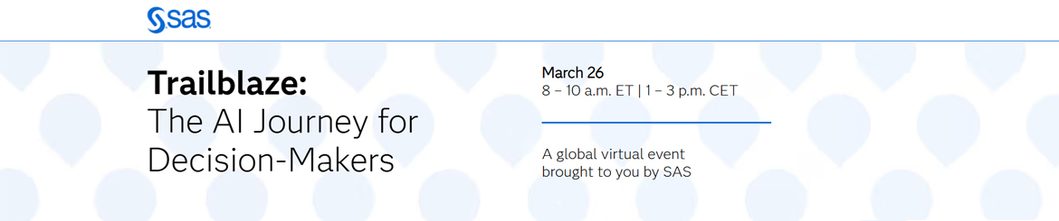 Join SAS on March 26 for a two-hour virtual summit designed for decision makers like you. You’ll walk away with practical guidance, real customer stories and a preview of new IDC insights that are all focused on adopting AI quickly, affordably, and with confidence.